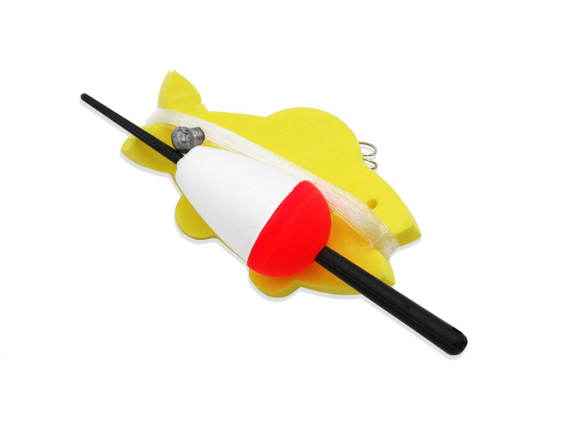 Sedal montado sobre una plegadora pez, con flotador de EVA.