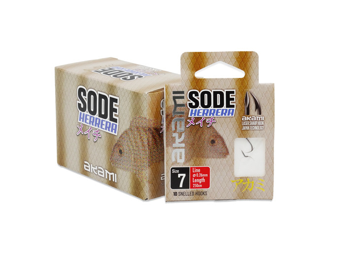 Cartera de 10 anzuelos montados con anzuelo japonés SODE de carbono con punta afilada a láser, empatado con hilo invisible de alta calidad ideal para la pesca con lombriz. Largo del hilo: 250cm. Especialmente indicado para la pesca de herrera/mabra. Presentación: Caja de 10 carteras.